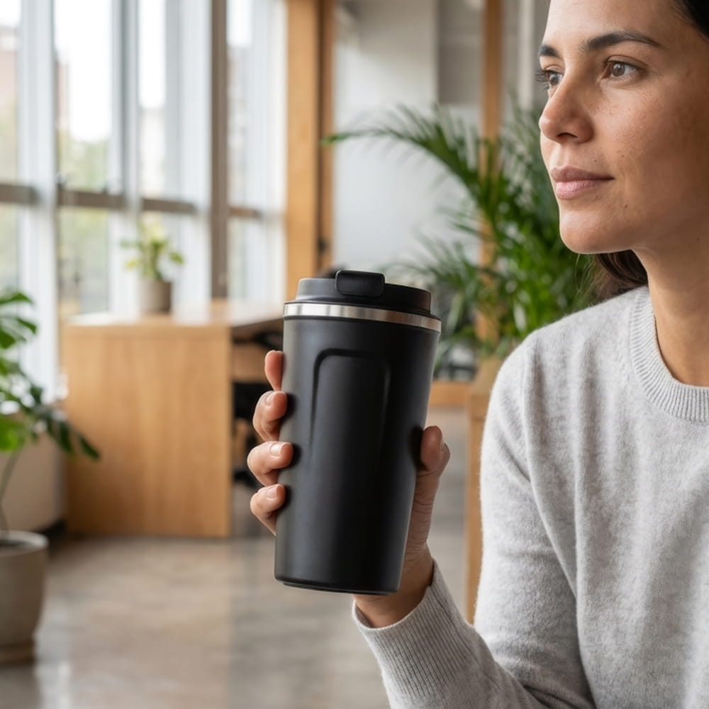 Otra gran ventaja de la «Coffee Mug» es la posibilidad de personalizarla con el logo de tu empresa, lo que la convierte en una excelente herramienta de marketing para tu marca.