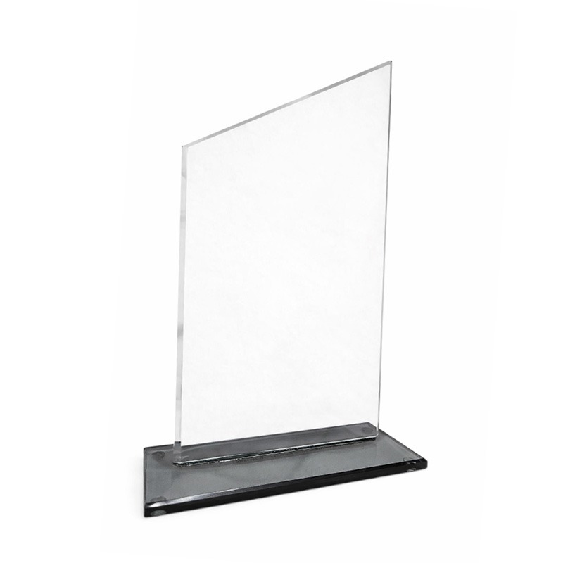 Confeccionado en cristal de alta calidad, su forma trapezoidal y biselada le aporta carácter y presencia, convirtiéndolo en una pieza distintiva para premiaciones corporativas y actos institucionales.